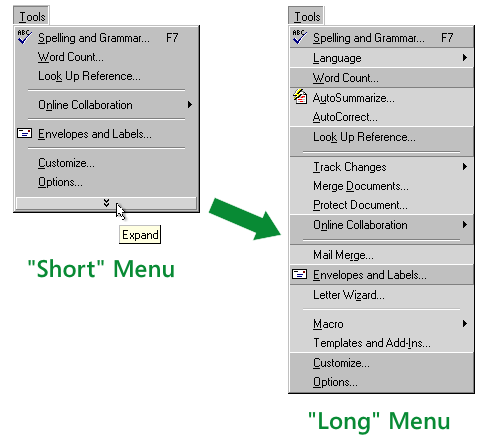 adaptive-menus Οι χρήστες προτιμούν τα στατικά μενού ή τα μενού που μπορούν να αλλάξουν μόνοι τους, ενώ δεν προτιμούν ούτε έχουν καλή επίδοση με ένα μενού που αλλάζει αυτόματα ανάλογα με τη συχνότητα χρήσης. Previous Next