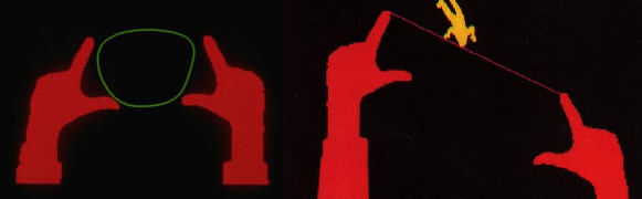 Το ερευνητικό σύστημα VIDEOPLACE του Myron Kruger τοποθετεί τη σιλουέτα του χρήστη μέσα σε ένα συμμετοχικό διαδραστικό περιβάλλον, όπου δεν υπάρχει διάκριση ανάμεσα σε χρήστες και γραφικά, με τη χρήση κάμερας σε πραγματικό χρόνο και χωρίς να μεσολαβεί κάποια συσκευή έμμεσης διάδρασης.