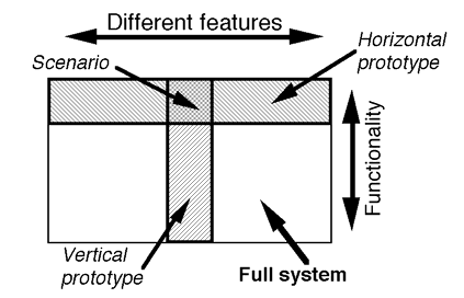 Το οριζόντιο πρωτότυπο της διεπαφής με τον χρήστη δίνει μια συνολική εικόνα του συστήματος από την πλευρά του χρήστη, αλλά δεν είναι πραγματικά λειτουργικό, όπως είναι ένα κατακόρυφο πρωτότυπο, το οποίο όμως υλοποιεί μόνο ένα μικρό μέρος της λειτουργικότητας του συστήματος.