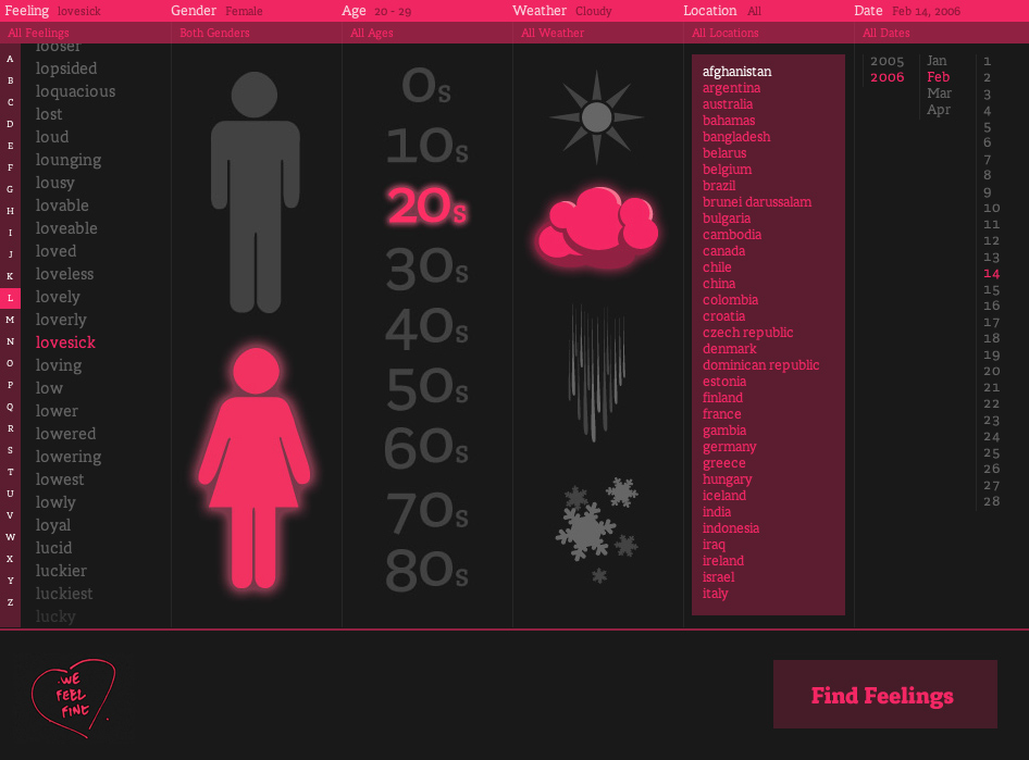 Η ανάκτηση της πληροφορίας μπορεί να ξεκίνησε από την αναζήτηση σε κείμενο στις μεγάλες ψηφιακές βιβλιοθήκες, αλλά γρήγορα βρήκε εφαρμογή στις νέες δραστηριότητες των ανθρώπων, όπως είναι η ανάκτηση πληροφορίας σχετικής με το συναίσθημα (π.χ., We Feel Fine) από ιστολόγια που συνήθως χρησιμοποιούνται από τους χρήστες τους ως προσωπικά ημερολόγια.